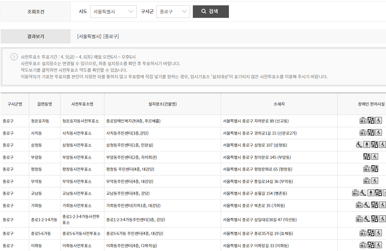서울 종로구의 경우 사전투표소입니다.