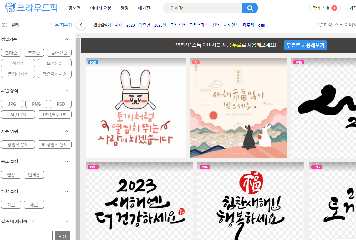 클립아트코리아에서는 여러 2023년 연하장 이미지를 다운받을 수 있습니다.